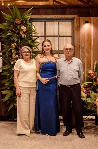 Os avós Nádia e Zenor acompanharam de perto cada detalhe da celebração, cuidando pessoalmente para que tudo ocorresse impecável e, visivelmente emocionados e orgulhosos pela conquista da neta, ambos não faziam questão de esconder a alegria. “Hoje é um dia muito especial para nossa família”, dizia o casal, enquanto recebia os cumprimentos pela formatura da neta.