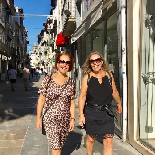 As manas Marilu e Mara de Fátima Marcelino, num daqueles inesquecíveis passeios pelo verão europeu. Nesta imagem elas estão passeando numa das belas ruas de Braga, Portugal, onde o filho de Marilu, Rafael, reside