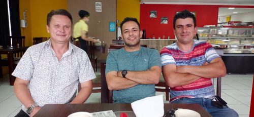 O aniversariante do dia 18, Rainwald Müller (Imagem TV), Sidnei Silvano (proprietário das famosas padarias Sid) e Rubens de Liz, no café da Padaria Sid, na Otacílio Vieira da Costa. Detalhe: o espaço já se tornou conhecido na cidade, como Senadinho!, devido aos frequentes encontros de políticos e empresários locais, que ocorrem lá