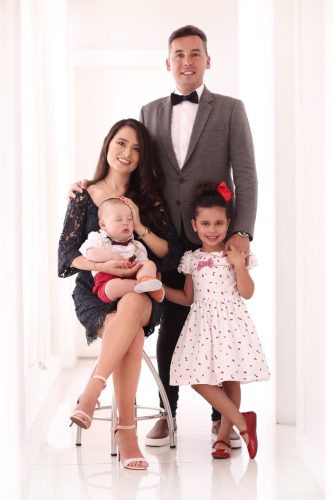 Os advogados Lincoln Roberto Camargo de Almeida e Valesca Letti Pellizzaro Camargo de Almeida, com os filhos Maria Antônia e Antônio Roberto, no Natal em família