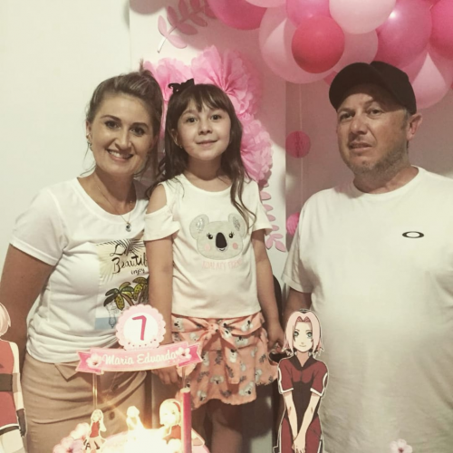 O Aniversário dos sete anos, de Maria Eduarda Prada Marin, foi comemorado em festa, com familiares. A aniversariante é filha de André Mendes Marin e Grasiele Prada Marin