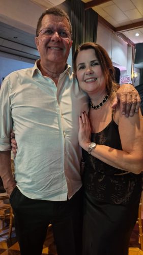Tatiana de Almeida Branco e o médico Maurício Bertolini, em noite de festa, no Serrano