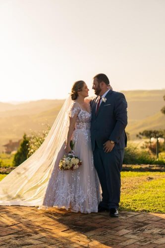 Os noivos Giovanna Boff Palma e Edson Andrade Lima Júnior, durante o bonito casamento na Villa Francioni, em São Joaquim