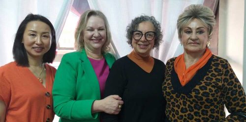Cao Jingxia, Marisa Bernardes, Waltair Carvalho e Leda Broering, em tarde de filantropia, no Clube da Lady