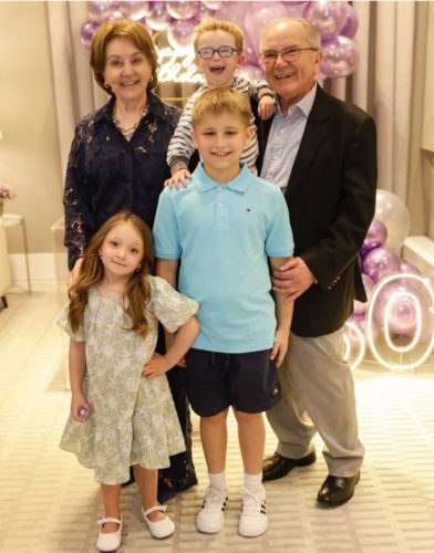 Zélia e o médico Antônio Carlos Appel, com os netos, durante os festejos em família, pela chegada dos 80 anos dela!