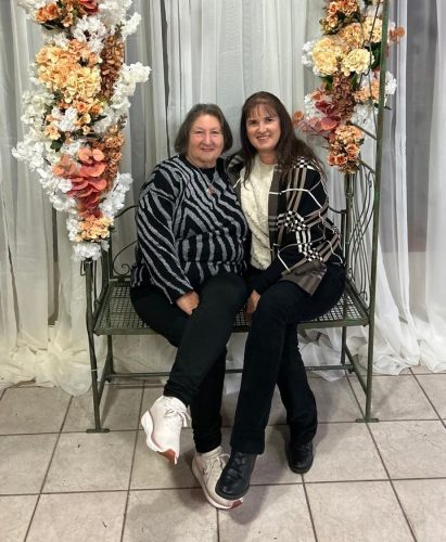 A escritora Esmênia Martignago e a jornalista Débora Bombílio