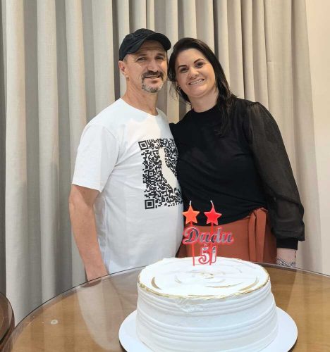 Alexandre Luciano Borges, conhecido como o goleiro Dudu e esposa Débora comemoram dia quatro de setembro, com animados festejos, o aniversário dele, no Clube Caça e Tiro
