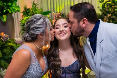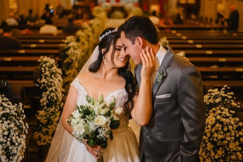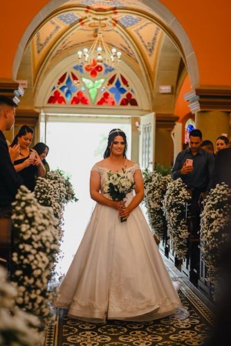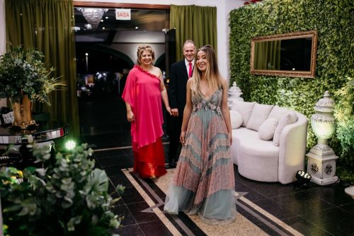 E os festejos, que tiveram buffet assinado pelo chef Joel Matos, no salão nobre do Clube Caça e Tiro, teve decoração exuberante, da talentosa decoradora Marilu Maldaner! O ambiente, que teve toques de sofisticação, foi decorado com lindas rosas brancas e exóticas orquídeas. E mais: a iluminação cênica e a sonorização estavam perfeitas, trabalho assinado pela famosa equipe de Toco Som. Talia e Jhonatan trocaram votos de amor eterno, perante cascata de luzes douradas que refletiam a pureza e a beleza do amor deles. E os detalhes, meticulosamente planejados por Marilu Maldaner e pela mãe do noivo, Jane, criaram verdadeira atmosfera de magia e romance. “Cada centímetro do salão estava adornado com arranjos florais deslumbrantes, combinando perfeitamente com a paleta de cores suaves escolhida para a ocasião”, descreve Marilu.