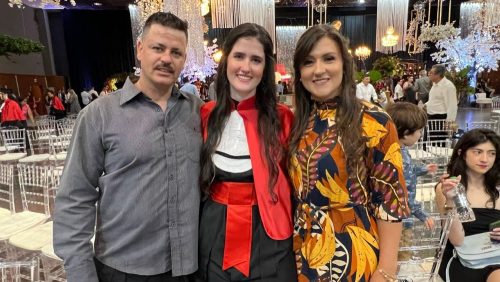 A formanda Allana Boufleur de Jesus Ferreira, com os papais Pâmela Boufleur e Allan Khauê de Jesus Ferreira