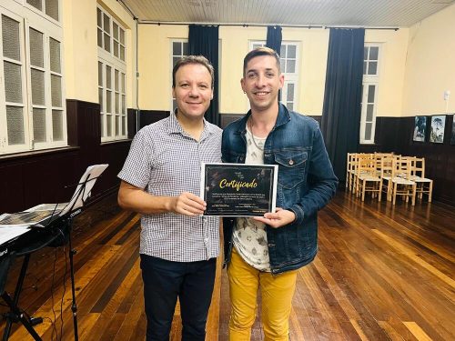 Alessander Correa Xavier recebeu certificado, entregue  pelo famoso maestro Joed Jeffer, pela sua classificação vocal