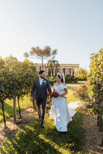 Os noivos Maria Eduarda Porto Martins e Ygor Borges, ela, filha de Maria Cladis Porto Martins e Lauro Varela Martins, ele, de Oleida Melo Borges e Francisco Nazaro Borges Andrade, durante o bonito casamento deles cuja cerimonialista foi Maysa Zanette, na Vinícola Campestre