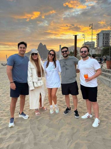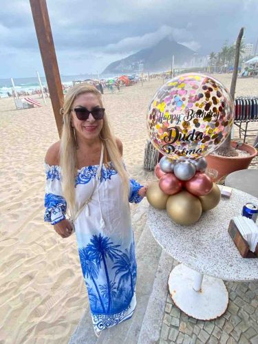 Duda Palma na praia de Ipanema, comemorando seu aniversário. “Teve bolo e DJ!”, a feliz aniversariante faz questão de registrar