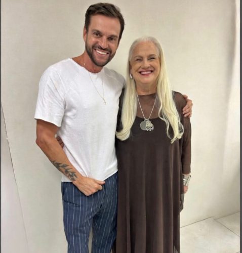Anselmo Prada, famoso jornalista lageano que há anos reside em Florianópolis, com a atriz Vera Holtz que recentemente apresentou espetáculo teatral em Floripa